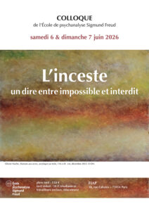 Le prochain colloque de l’Epsf, « L’inceste : un dire entre impossible et interdit », aura lieu les samedi 6 et dimanche 7 juin 2026 au FIAP Jean Monnet (30, rue Cabanis – 75014 Paris).